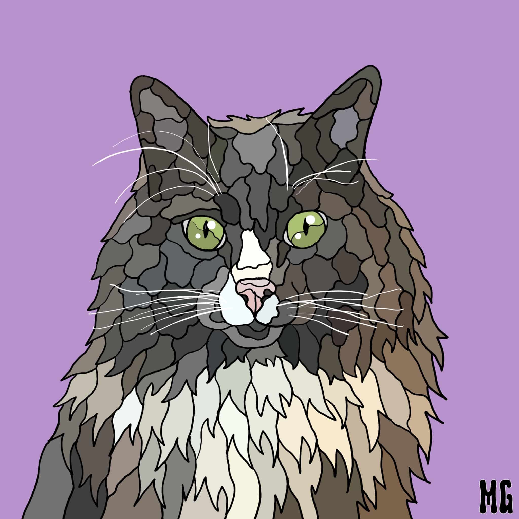 For all the animal lovers out there—yes, I do custom portraits of your furry (or feathered, or scaled!) friends! Each piece is lovingly created to capture your pet’s unique personality with bright colors and bold style. In addition, 10% of every portrait goes directly to no-kill animal shelters in Minnesota, helping pets in need find loving homes.